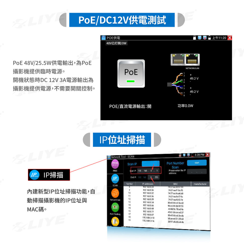 增加ONVIF跨網段測試,內建POE 48V/25.5W與DC12V供電,
